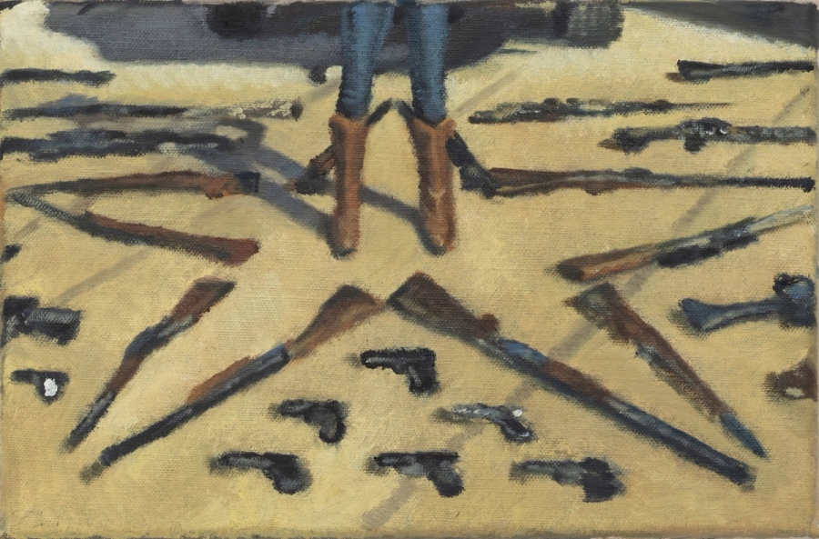 Issy Wood, “Woman with guns”, 2024, oil on linen, via Michael Werner